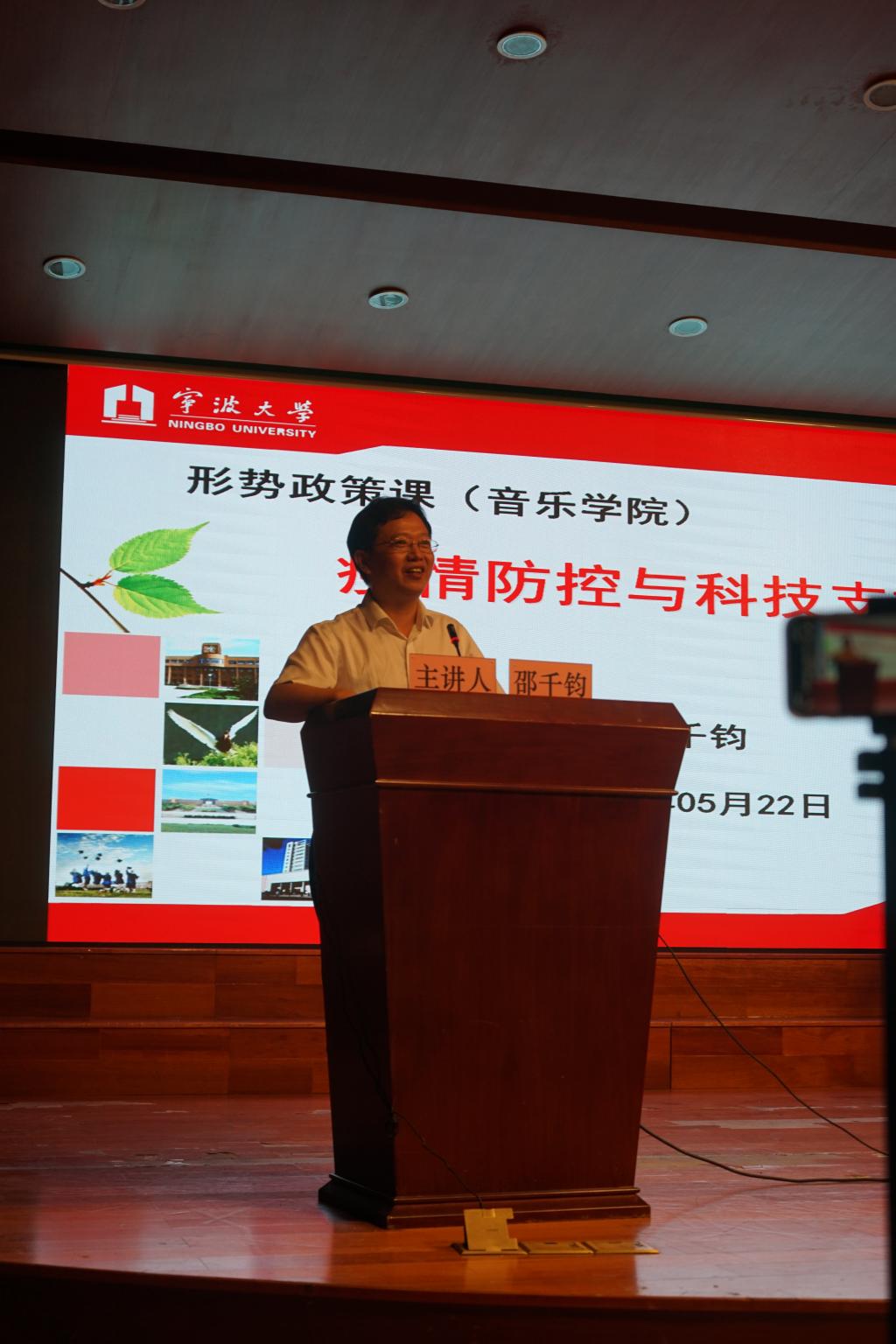 5月22日晚,邵千钧副校长在西区小音乐厅为色情论坛师生开讲“新时代的中国”思政大讲堂,主讲题为“疫情防控与科技支撑”的形势与政策课, 200余名师生参与听讲,此课也作为色情论坛党总支理论学习中心组学习扩大会学习内容。